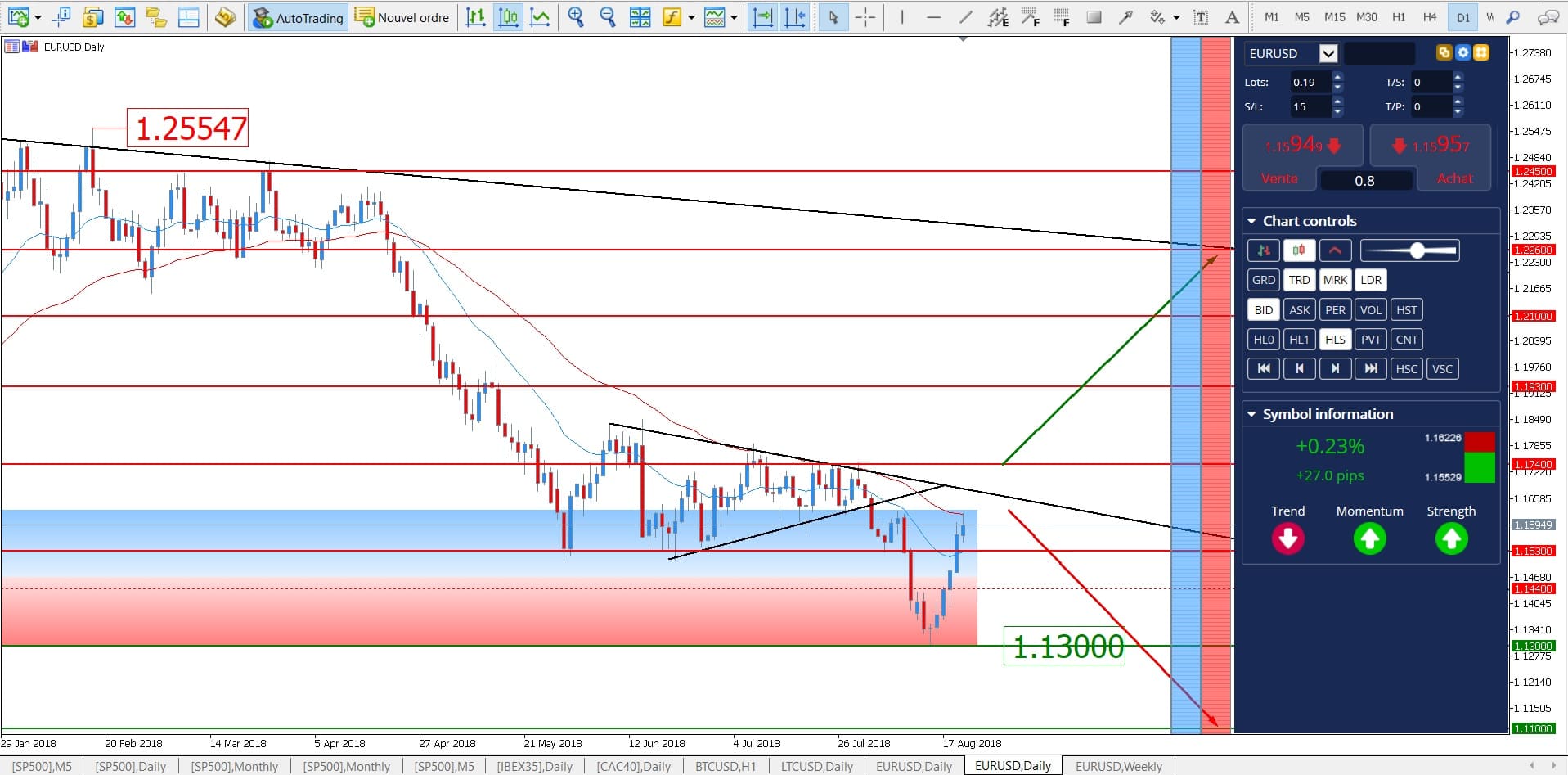 Source : CFD EURUSD, D1 Chart, MT5 Admiral Markets, 31st of August 2018